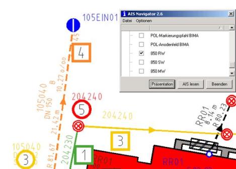Grundsätzlich ist es für die Darstellung von Abwasserobjekten im AS Kanal erforderlich, dass die korrekten Fachauswahlen eingestellt sind, die bestimmen, welcher Teil des Datenbestandes im AIS dargestellt werden soll. Hierzu kann der AIS Navigator verwendet werden, der über die Schaltfläche oder den Menüpunkt des AS Bestand aufgerufen werden kann (AIS-Hauptmenü->AS Bestand->). Im AIS Navigator sind dann alle Fachauswahlen für die Folie 850 auszuwählen und über die Schaltfläche „Präsentation“ des Navigators im AIS zu präsentieren.