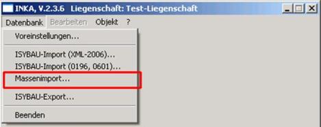 Der Massenimport findet sich dann im INKA-Hauptmenü unter „Datenbank->Massenimport“.